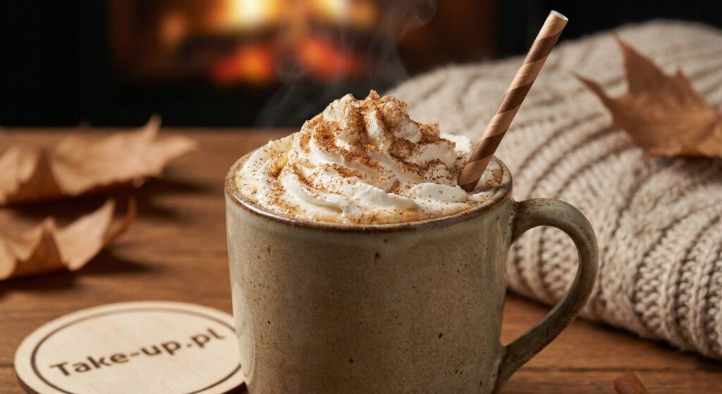 🥤 Rekomendacja słomki Take-up: Wybierz klasyczną słomkę Brązową (Kraft) lub Prążkowaną. Jej naturalny wygląd idealnie komponuje się z rustykalnym charakterem dyniowego latte.